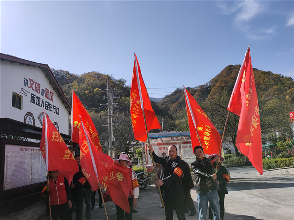 金秋時節(jié),在上竹鎮(zhèn)各村落,肩扛紅旗的宣傳隊伍行走在鄉(xiāng)間小路,為上竹鎮(zhèn)平安建設工作忙碌著。HHL安康新聞網