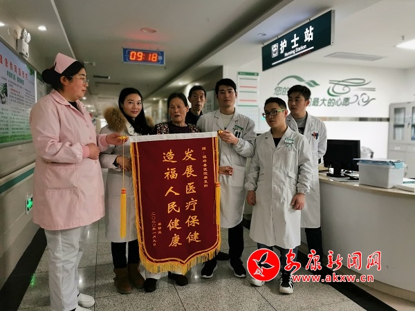 本網(wǎng)訊(通訊員 杜波兒 周元娟)寒冬已至,可鎮(zhèn)坪縣醫(yī)院康復(fù)科的病區(qū)卻溫暖如春。鎮(zhèn)坪縣醫(yī)院康復(fù)科大夫黃春敏收到患者粱修鳳老人親手送來(lái)的錦旗,上面寫(xiě)著“發(fā)展醫(yī)療保健,造福人民健康”,錦旗表達(dá)了對(duì)黃春敏大夫及全體醫(yī)護(hù)工作者的感激之情。