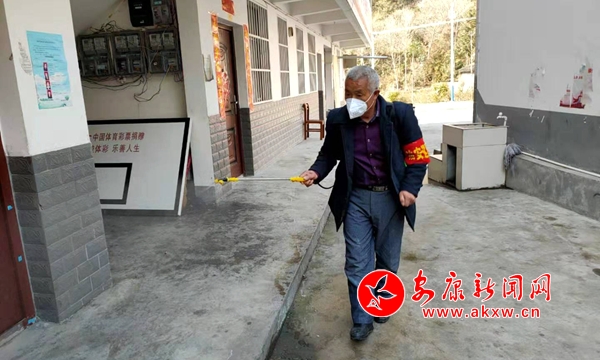 抗擊疫情刻不容緩,噴灑消毒液能有效防止新冠肺炎傳播,作為村上的防疫員,在消殺工作中有經(jīng)驗,他便主動請纓,擔(dān)起責(zé)任,按規(guī)定的藥液比例現(xiàn)場配置藥劑,背上消毒壺一家一戶的仔細(xì)噴灑消毒水,雖然天氣寒冷,一天下來,他銀色的頭發(fā)上汗水滴滴下落,但他認(rèn)為這樣很有意義。全村消毒一遍需要兩天時間,盡管任務(wù)重,耗時長,但他從沒有中途放棄過,也沒有抱怨過,更沒有收取一分報酬,像這樣消殺,至目前,他一共進行了三次。每當(dāng)有返村人員回來時,他也是主動上門房前屋后、屋里屋外的進行消殺。村黨支部書記劉道金多次勸他讓年輕人干這種體力活,他嚴(yán)肅的說:“一個黨員,一面旗幟,我這面旗幟永遠(yuǎn)不能倒!”