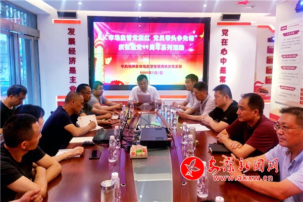 本網(wǎng)訊(通訊員 歐佩)7月1日,鎮(zhèn)坪縣市場(chǎng)監(jiān)督管理局機(jī)關(guān)黨支部組織開(kāi)展“市場(chǎng)監(jiān)管黨旗紅 黨員帶頭爭(zhēng)先鋒”慶祝建黨99周年系列活動(dòng)。通過(guò)集中學(xué)習(xí)習(xí)近平總書(shū)記來(lái)陜考察重要講話重要指示精神、觀看微視頻《從紅船到巨輪》、重溫入黨誓詞、表彰10名疫情防控先進(jìn)個(gè)人、支部書(shū)記講黨課、開(kāi)展黨建知識(shí)競(jìng)賽等多種形式,共同慶祝建黨99周年。