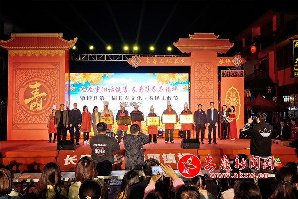 開幕式上,鎮(zhèn)坪縣政府代表與代安長壽谷項目、“芋硒王”康養(yǎng)項目負責人進行了生態(tài)康養(yǎng)等項目簽約,為41名95歲以上的長壽老人頒發(fā)了“長壽之星”榮譽證書,邀請10名“長壽之星”代表上臺,為其舉行拜壽儀式,并品鑒長壽菜肴,觀看精彩演出。