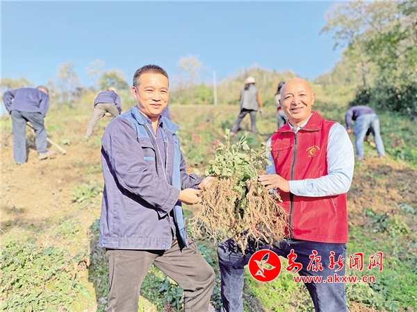 “真的太謝謝你們了,走,走,走,去我屋里頭喝口水,下午我炒兩個菜,喝兩杯再回去。”金漢忠熱情地招呼著前來幫他采收藥材的志愿者。“今天就不了,趁著天氣好,公司基地里的丹參也要趕緊挖,改天來。”說話間,遠教技術員余小松帶著隊伍背著工具往公司藥材種植基地趕去。