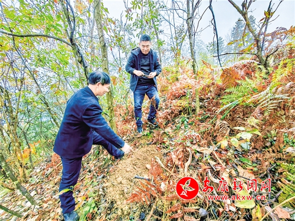 郭光均的手掌不大,十指精瘦,當(dāng)他撩起枯敗的蕨草、扒開土堆掏出天麻時,那手就像小鐵耙一樣堅(jiān)硬、靈活。他揪一把雜草揩掉手上的泥,指向?qū)γ娴纳筋^介紹:“這是32戶的荒山和耕地,攏共1860畝,都流轉(zhuǎn)給我了,現(xiàn)在種了天麻、豬苓、大黃、五味子……”郭光均掰著指頭數(shù),左手的指頭數(shù)完了,又?jǐn)?shù)右手的指頭。總之,這土里生的,樹上長的,枝頭結(jié)的,都是他的值錢的寶貝。
