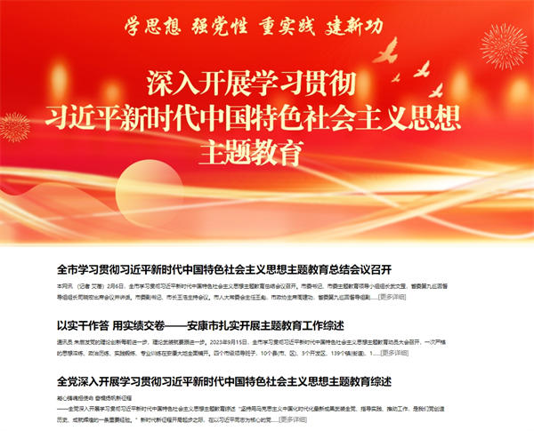 二是圍繞“深入開展學習貫徹習近平新時代中國特色社會主義思想主題教育”。安康新聞網(wǎng)認真統(tǒng)籌謀劃,深入開展學習貫徹習近平新時代中國特色社會主義思想主題教育宣傳報道工作。網(wǎng)站及時推出“深入開展學習貫徹習近平新時代中國特色社會主義思想主題教育”專欄,介紹我市、各縣(市、區(qū))及單位部門組織開展主題教育的經(jīng)驗做法。