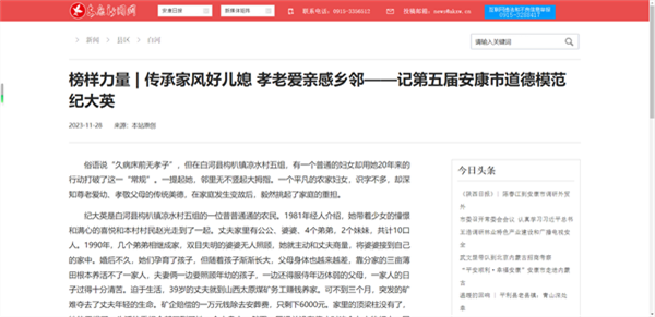 堅持以人為本報道理念,充分凸顯人文精神。報道《榜樣力量|傳承家風好兒媳孝老愛親感鄉(xiāng)鄰——記第五屆安康市道德模范紀大英》《我市3人上榜!2023年第四季度“陜西好人榜”發(fā)布》《王淳鋒:腳下沾著泥土心里揣著群眾》《趙光鮮:立足崗位謀發(fā)展巾幗創(chuàng)業(yè)勇?lián)敗返,啟迪思想,溫潤心靈,詮釋真善美。