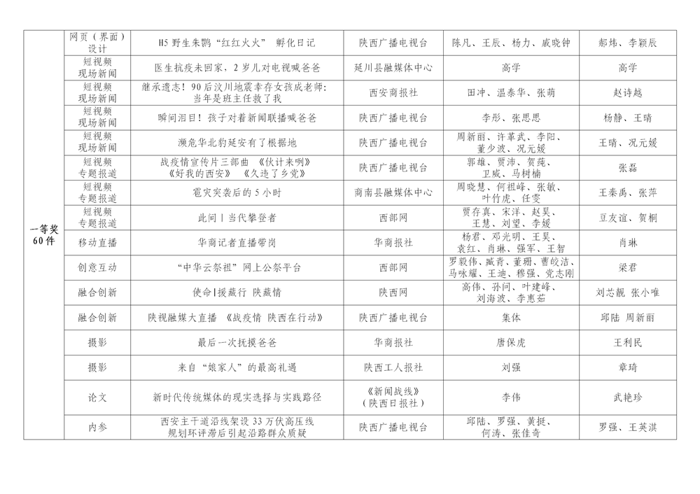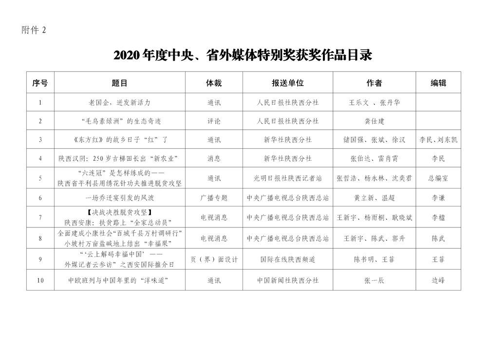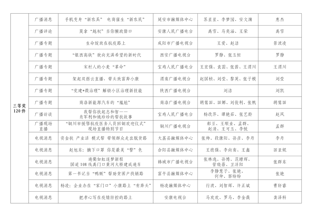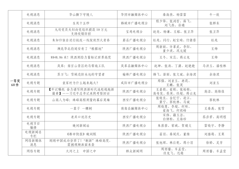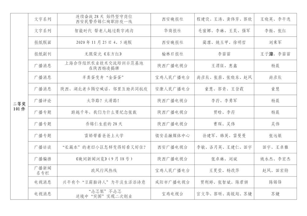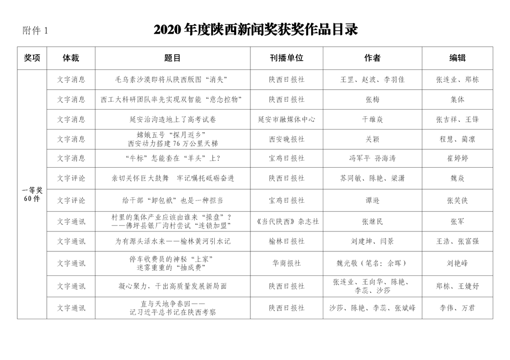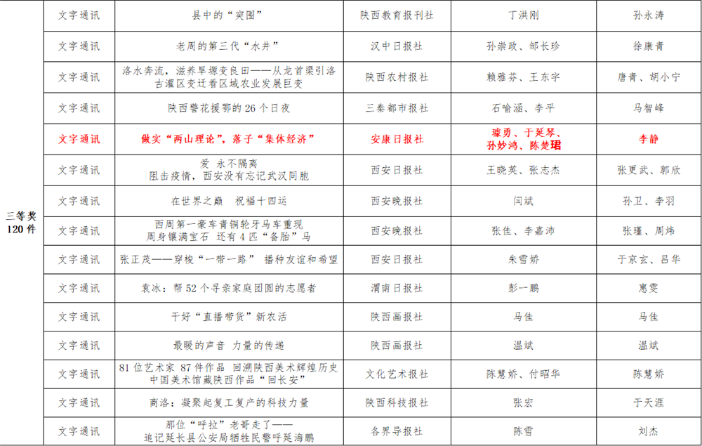 7月6日,陜西省新聞工作者協(xié)會公布了2020年度陜西新聞獎、陜西省優(yōu)秀新聞工作者評選結(jié)果,最終評定2020年度陜西新聞獎獲獎作品281件,其中一等獎作品60件、二等獎作品101件、三等獎作品120件;10件作品獲2020年度陜西新聞獎“中央、省外媒體特別獎”;12名新聞工作者獲得陜西省優(yōu)秀新聞工作者稱號。Ynz安康新聞網(wǎng)