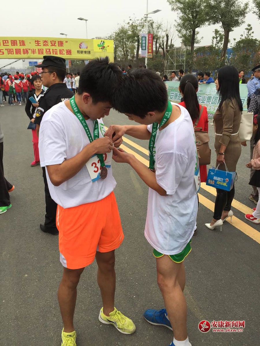 參加10公里比賽的運(yùn)動員已經(jīng)沖刺抵達(dá)終點