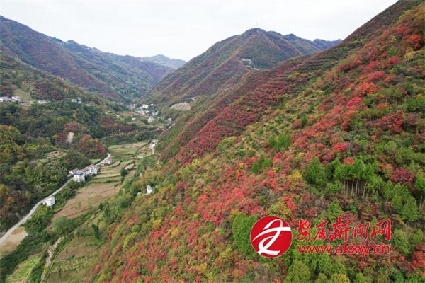 初冬時節(jié),地處秦嶺南麓的漢濱區(qū)早陽鎮(zhèn)境內(nèi),滿山的紅葉把山村裝扮得美如一幅畫,引得眾多游客和市民來這里賞紅葉、觀美景,盡享生態(tài)之美。圖為無人機視角下的早陽紅葉美景。 (通訊員 周濤) Kmu安康新聞網(wǎng)