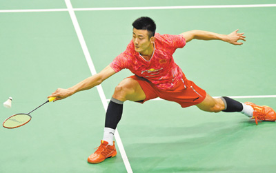 11月22日,中國選手諶龍?jiān)?017香港羽毛球公開賽男單比賽中。DHv安康新聞網(wǎng)