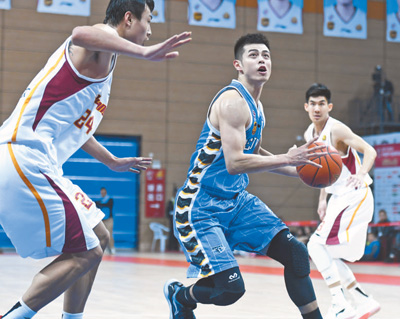 | 1月20日,北京隊球員方碩(中)在對陣浙江隊的比賽中進(jìn)攻。 |