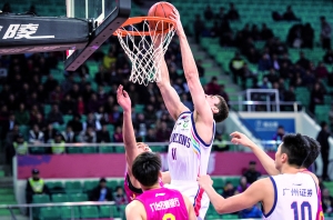 漢斯布魯(扣籃者)是廣州隊(duì)進(jìn)入季后賽的關(guān)鍵人物。信息時(shí)報(bào)記者 陸明杰 攝