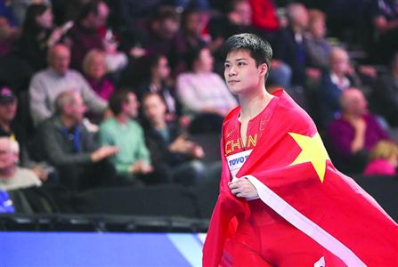 當(dāng)成績(jī)顯示在大屏幕上,蘇炳添?yè)]拳慶祝這來(lái)之不易的獎(jiǎng)牌,他從看臺(tái)上接過(guò)一面五星紅旗,身披紅旗繞場(chǎng)一周慶祝勝利。