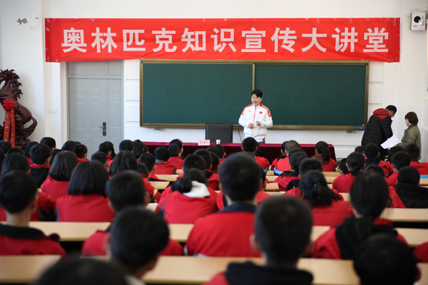 崇禮一中的學(xué)生們在奧林匹克知識宣傳大講堂上學(xué)習(xí)奧林匹克知識