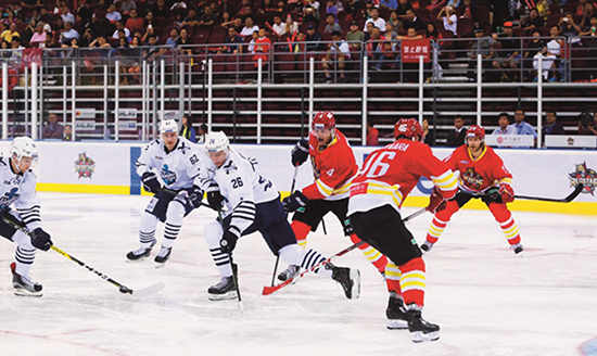 2016年9月5日,在北京五棵松樂視體育生態(tài)中心,昆侖鴻星冰球俱樂部萬科冰球龍隊(duì)主場對戰(zhàn)俄羅斯隊(duì)。當(dāng)晚,五棵松體育館涌進(jìn)了近萬名觀眾,現(xiàn)場沸騰,掌聲雷動(dòng)。