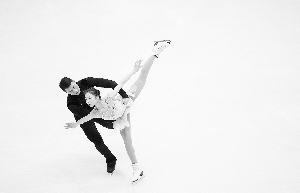 于小雨(右)/張昊在雙人滑短節(jié)目比賽中。 新華社記者 金宇攝