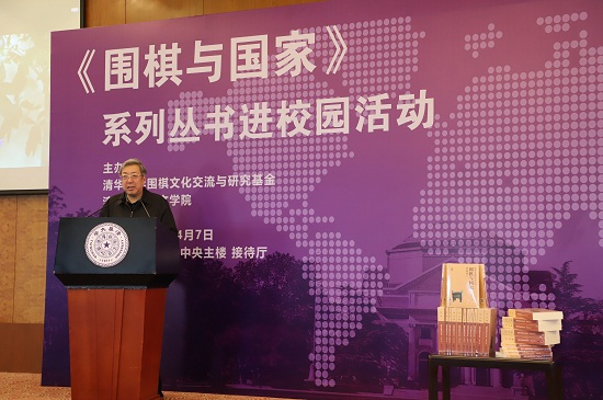 人民網(wǎng)北京4月8日電 昨天上午,“《圍棋與國家》系列叢書進校園”活動在清華大學(xué)中央主樓舉行,叢書作者、中國圍棋協(xié)會主席林建超,清華大學(xué)校務(wù)委員會副主任謝維和,本書編審指導(dǎo)、北京圍棋基金會理事長華以剛,清華校友、原國稅總局副局長許善達,北大校友、全國人大常委會預(yù)算工作委員會原副主任黃建初,北大校友、中國國際友好聯(lián)絡(luò)會原副會長藍曉石,中國財經(jīng)出版?zhèn)髅郊瘓F經(jīng)濟科學(xué)出版社總編輯李洪波,叢書項目推薦人、清華大學(xué)馬克思主義學(xué)院原常務(wù)副院長林泰,清華大學(xué)人文學(xué)院哲學(xué)系教授、圍棋基金理事長韓立新,清華圍棋基金副理事長呂賓,北京大學(xué)考古文博學(xué)院教授齊東方等,以及清華大學(xué)、北京大學(xué)等高校師生和媒體記者共近百人參加了活動。