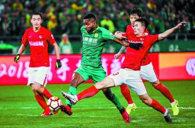 昨晚(22日),中超第七輪一場焦點戰(zhàn)在工人體育場的蒙蒙細雨中進行。面對兩球落后的不利局面,北京中赫國安隊憑借外援奧古斯托和巴坎布終場前的進球,主場2比2逼平衛(wèi)冕冠軍廣州恒大隊,艱難進賬1分。