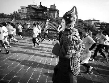 四月春風(fēng)拂面,周六的古城西安熙熙攘攘,古城墻上發(fā)令槍響起,數(shù)千名跑者放飛自我。