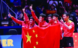 北京時(shí)間5月6日晚,2018年團(tuán)體世乒賽在瑞典哈爾姆斯塔德落下帷幕。在壓軸上演的男團(tuán)決賽中,由馬龍、樊振東和許昕出戰(zhàn)的中國(guó)男隊(duì)以3:0橫掃由波爾、菲魯斯和弗朗西斯卡出戰(zhàn)的德國(guó)隊(duì),成就團(tuán)體世乒賽史上首次九連冠。此前中國(guó)女乒曾經(jīng)兩次在沖擊九連冠時(shí)功虧一簣,這一次魔咒終于被中國(guó)男乒打破。