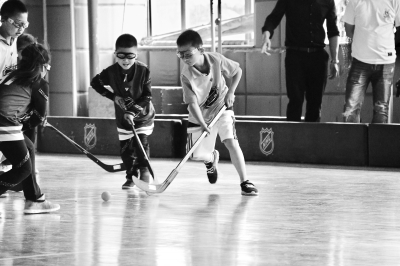 穿著普通運(yùn)動鞋在旱地上也能打“冰球”?沒錯。在北京市冰球運(yùn)動協(xié)會的推動下,世界頂級冰球聯(lián)盟NHL(北美職業(yè)冰球聯(lián)賽)日前在京啟動“NHL旱地冰球項目”,京城4所小學(xué)的師生率先接受培訓(xùn),并參加了比賽,孩子們在場上打得不亦樂乎。