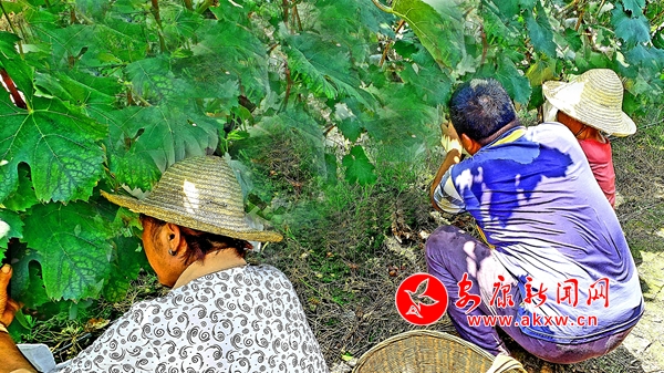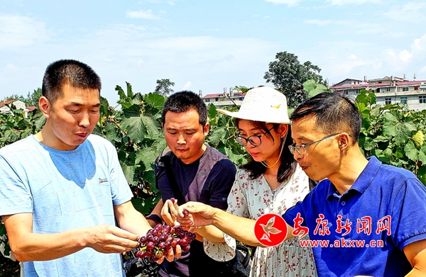 正午時分,在漢濱區(qū)五里鎮(zhèn)劉營村一組,一波人正在“黑牛”上躥下跳地帶領(lǐng)下,揮汗如雨踏草穿林,來到葡萄樹旁、甜桿兒林里、瓜前李下,拍照片、尋問題,完全不顧氣溫已達到“白熱化”階段。