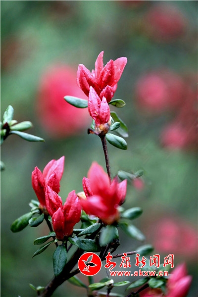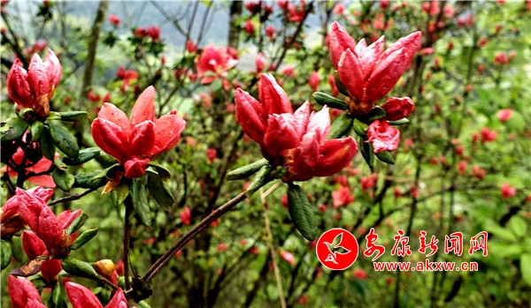 變焦鏡頭下,水珠盈盈欲滴的映山紅,張開每一寸毛孔,大口大口地呼吸。吐納之間,是風(fēng)里春天的氣息,是雨里植物的拔節(jié)。不留神闖入這勝境的人們,便醉倒于負(fù)氧離子的懷抱。琳瑯風(fēng)雨過后,漫山遍野都沾染上水的晶瑩,大地的飽和度被調(diào)至清明,每一片樹葉都在私語,每一棵枝條都閃著盈光。